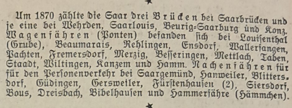 Brücken und Fähren über die Saar 1870. Saarbrücker Landeszeitung 1938