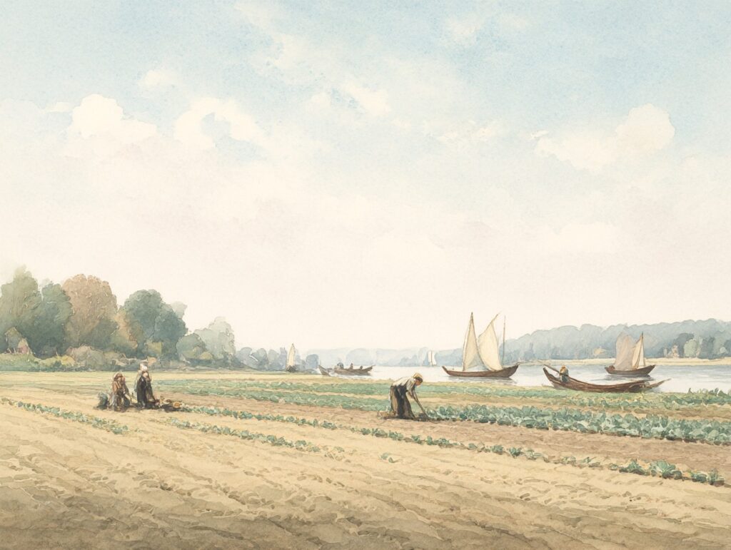 „Liesdorf, welches gegenwärtig die ganze Gegend des Kohlenreviers bis in den Kreis Ottweiler mit Gemüse und Setzlingen zu Kohl und Runkelrüben versorgt, und seinen teilweisen mageren Sandboden durch Kultur und starke Düngung zu unglaublicher Produktion gebracht hat, war damals ebenfalls noch weit zurück; jetzt wurde der Boden etwas besser bewirtschaftet, weil die nahe Garnisonsstadt Saarlouis diesem Bann jetzt starke Düngermasse fast kostenfrei lieferte. Durch die Marktschiffe, die wöchentlich zweimal von Liesdorf nach Saarbrücken fuhren, hat sich, als der Gemüsebau Fortschritte machte, eine leichte Gelegenheit zum Gemüsehandel nach Saarbrücken, der in den folgenden Zeiten, als die Kohlenwerke und Fabriken einen bedeutenden Aufschwung nahmen, auch eine merkwürdige Entwicklung aller Kulturverhältnisse der Gemeinde Liesdorf hervorgehoben hat. Gegen Ende der 1830er Jahre regte es sich endlich auch im Kreise Saarlouis, als der Brückenbau in Dillingen und der Bau der Straße nach Saarbrücken, die den Kreis in seiner ganzen Länge durchschneidet, sowie der Ausbau der metzer„busendorfer- und lebacher Straßen in wenigen Jahren zu Stande kam. Darauf begann die außerordentliche Zunahme der Kohlenausbeute und die erweiterte Fabriktätigkeit nach allen Seiten hin Arbeit, Verdienst und Leben zu verbreiten, und nun blieb auch die Landwirtschaft nicht zurück. Der landwirtschaftliche Verein hatte sich vom Rheine her nach der Saar verbreitet, und da ein einzelner Kreis nicht im Stande war, eine Vereinigung von Männern zusammen zu bringen, um diesem Vereine Einfluss und Tätigkeit zu verschaffen, so waren die Kreise Saarlouis, Merzig und Saarburg zusammengetreten, und es gelang der kenntnisreichen Führung tatkräftiger opferfähiger Männer unter unsäglicher Mühe, bessere Ackerwerkzeuge und teilweise auch die Stallfütterung einzuführen.“